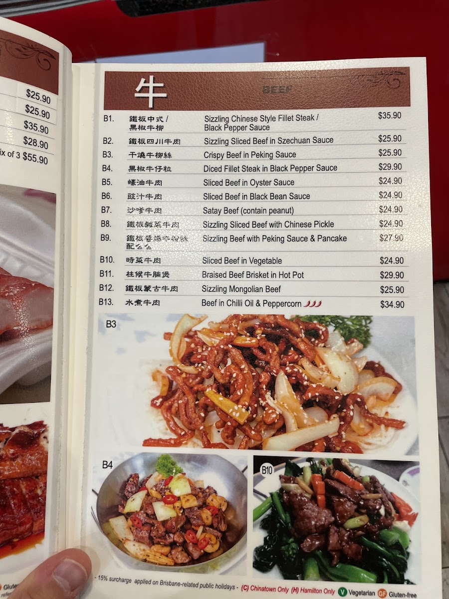 The restaurant is known for its extensive menu, which includes favorites like Peking Duck, Steamed Mud Crab, and Szechwan Chicken.